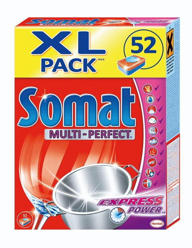 Nowością w recepturze Somat Multi-Perfect jest formuła Express Power. Dzięki niej tabletki rozpuszczają się szybciej. Dlatego nawet po myciu w krótkich i ekologicznych programach naczynia będą perfekcyjnie czyste.