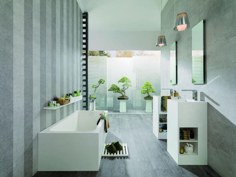 Coraz większą popularnością cieszą się płytki w dużych formatach – nawet 1,2 m x 3,6 m. Pasują one do dużych, jak i małych łazienek. Można nimi pokryć podłogi oraz ściany. Wielkoformatowe płytki tworzą jednolitą powierzchnię, która optycznie powiększa pomieszczenie. Kafle w rozmiarze XL stanowią idealne tło dla minimalistycznych aranżacji, a w rezultacie tworzą oryginalny design. „Ogromne płytki dają równie ogromne pole możliwości dekoratorskich. Prym wiodą szarości i kamienne wzory, a marmuropodobne płytki w dużym rozmiarze cechuje szlachetność oraz autentyczność.” – dodaje Anna Kaczkowska, Członek Zarządu w firmie CERMAG.