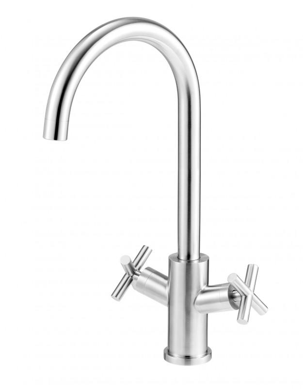 Ciekawym rozwiązaniem jest również bateria zlewozmywakowa Prato, połączenie nowoczesnej, surowej linii wzorniczej z akcentami klasycznymi w postaci dwu uchwytów przylegających do wylewki oraz bateria zlewozmywakowa Livorno z dekoracyjnymi kurkami o motywie krzyżaka. Surowa, a jednak lekka, nawet nieco zabawna, stalowa forma tej baterii będzie doskonale korespondować z minimalistycznym wnętrzem współczesnej kuchni. Baterię wykonano ze stali szlachetnej AISI 304.
