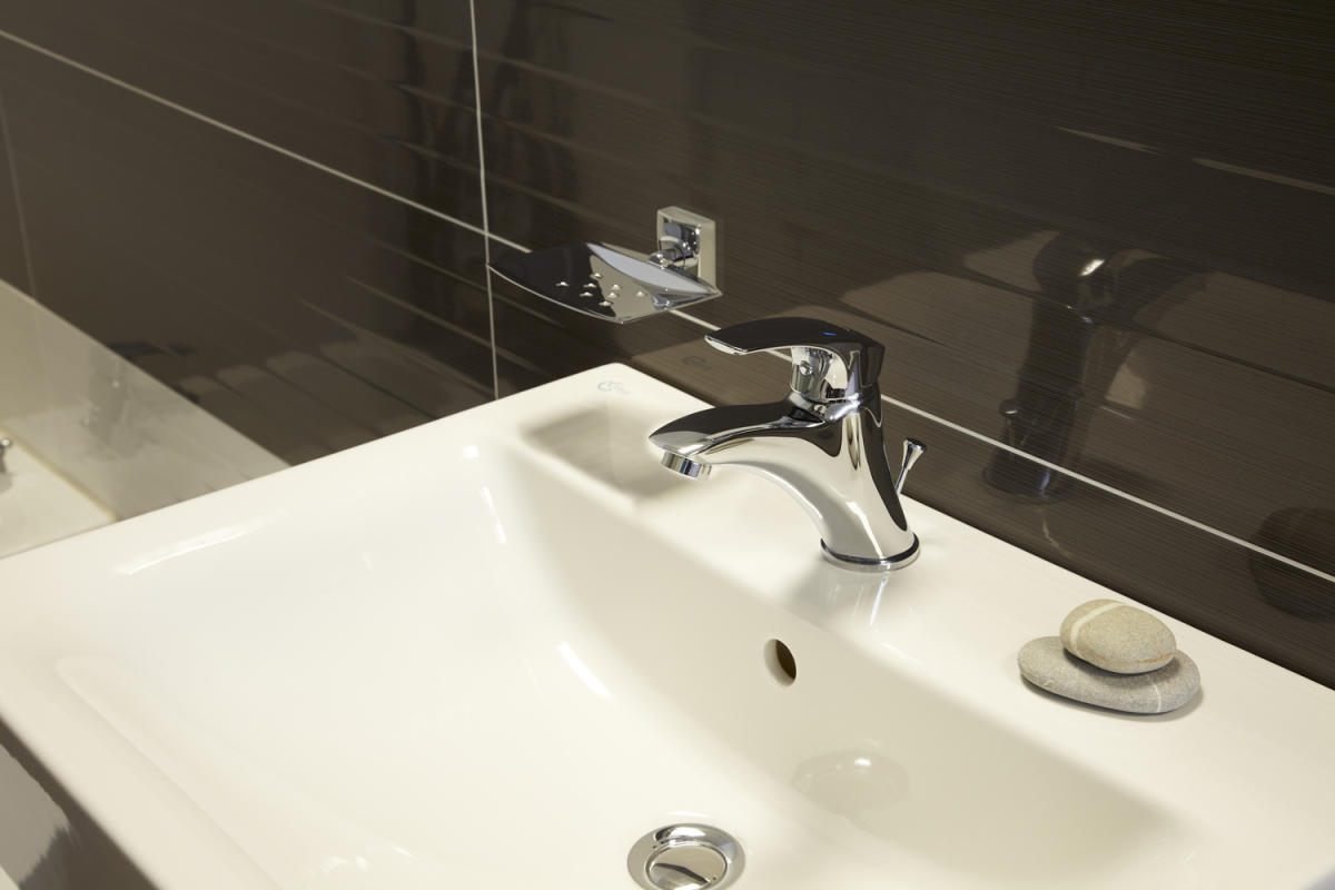 W bateriach znajdziemy nowoczesne urządzenia takie jak: dwustopniowa głowica ceramiczna z systemem kontroli ciepłej wody, wydajny perlator i system łatwego usuwania osadów kamienia wapiennego.
