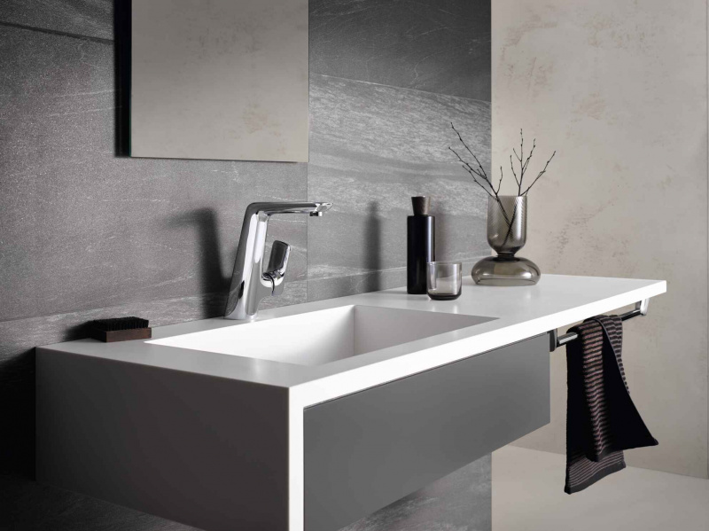 Do umywalek wiszących i meblowych pasują szczególnie baterie montowane na krawędzi, a do nablatowych lub wpuszczanych w blat – ścienne lub mocowane na blacie, czyli za umywalką. Baterie nablatowe przejmują też rolę praktycznych dekoracji łazienkowych. Na przykład modele z serii KLUDI AMEO stanowią kwintesencję nowoczesnego wzornictwa. Ich purystyczna forma w połączeniu z zaokrąglonymi liniami idealnie wpisuje się w najnowsze trendy.