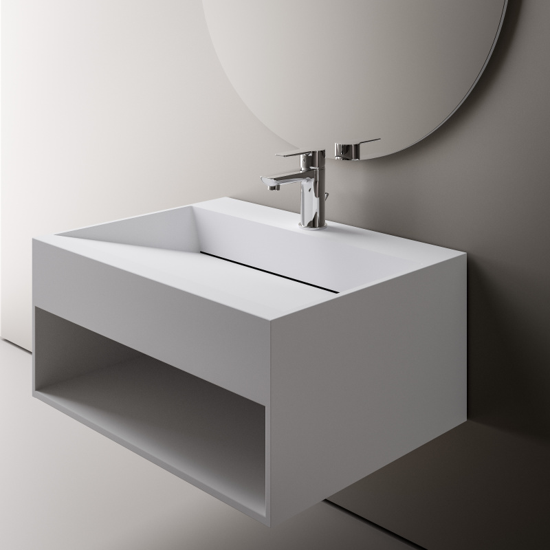Umywalka NT38: umywalki wykonane z odlewu mineralnego (konglomeratu) oferują wyjątkowe wrażenia dotykowe i duży wybór kształtów i rozmiarów. Materiał ten jest niezwykle odporny na ciepło i gwarantuje wysoki standard higieny, ponieważ w żaden sposób nie pozwala na rozwój grzybów ani pleśni. Wysokiej jakości odlew mineralny jest pokryty specjalną powłoką żelkotową, która znacznie zwiększa wytrzymałość powierzchni.