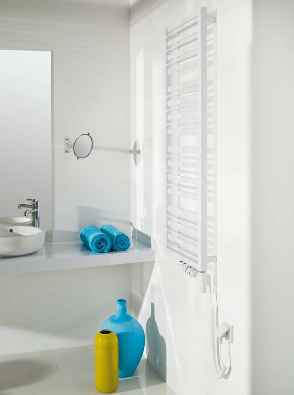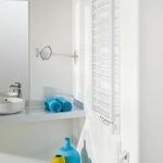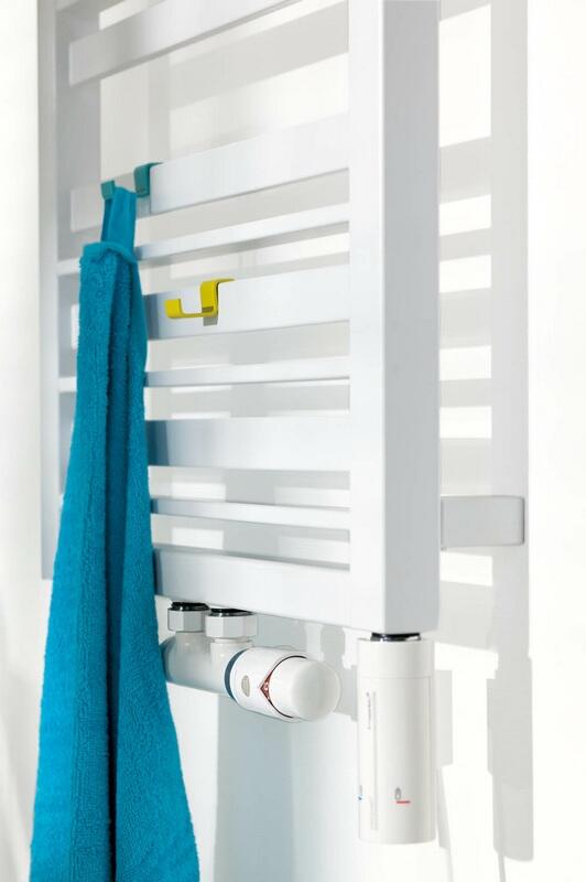 Model Code od Instal-Projektu to kwintesencja przestrzennej i dynamicznej konstrukcji. Profile o prostokątnym przekroju, ułożone naprzemiennie w pionie i poziomie sprawiają, że grzejnik ten cechuje wrażenie głębi, która podkreśla jego zdecydowany i wyraźny kształt, odznaczający się nawet na tle białej ściany. Nie zapominajmy o dodatkach – koniecznie w kolorze. Drobne elementy dekoracyjne i praktyczne takie jak: mydelniczki, kubki do mycia zębów, różnego rodzaju pojemniki, powinny mieć inspirujący kolor, który będzie stanowił akcent ożywiający przestrzeń. Ciekawym pomysłem jest dobranie do grzejnika haczyków w intensywnych barwach, przełamujących monochromatyczność aranżacji. Bawmy się kolorem dodatków i eksperymentujmy z ciekawymi, designerskimi formami znanych elementów wyposażenia, a na pewno białej aranżacji nie grozi nuda.