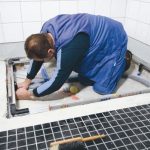 Po ułożeniu płytek na ramie montażowej należy umieścić wygłuszające profile gumowe, a na nich osadzić powierzchnię prysznicową. Kolejną czynnością, jaką powinien wykonać instalator jest zamknięcie syfonu i wypełnienie szczelin pomiędzy płytkami a powierzchnią brodzika silikonową fugą. Uszczelnianie zewnętrznej krawędzi powinno odbywać się przy odpowiednim obciążeniu powierzchni prysznicowej.