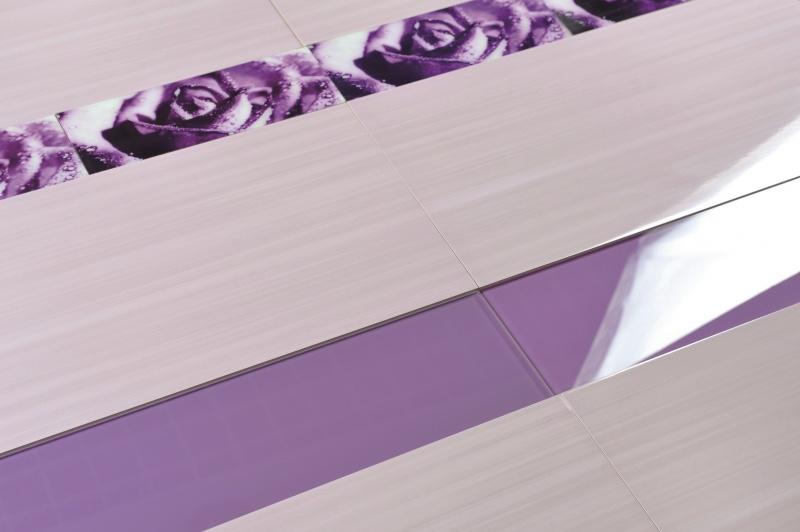 Dla wielbicieli wyrazistych akcentów kolorystycznych idealne będą kwiatowe dekory Colore Romance. Kwiatowy motyw jest przykryty przez warstwę szkła, dodającego głębi i wyrazistości kolorom. Elegancki rysunek róży w odcieniu oberżyny idealnie komponuje się z delikatnością jasnofioletowej glazury Energy Voila. W połączeniu tworzą zestaw romantyczny a zarazem niezwykle energetyczny. Doskonałym uzupełnieniem kompozycji są listwy szklane lub dekor 60×30 cm Lavender, nadające całości nowoczesnej energii.
