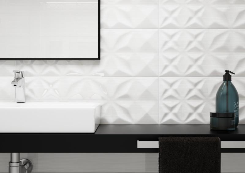 Współczesne propozycje wykończenia ścian przestają bazować jedynie na kolorze, który oczywiście nigdy nie przestaje być ważny, bo w dużej mierze kształtuje nasz nastrój po wejściu do pomieszczenia. Płytki, w których poza barwą, na pierwszy plan wysuwają się przestrzenne formy, podkreślają i wydobywają z wnętrza głębię barw. Właśnie dlatego w łazienkowych aranżacjach zaczynamy poświęcać coraz większą uwagę strukturze materiału.