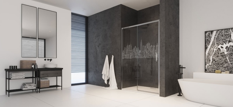 W łazience w stylu high-tech dominuje metal i chłodna kolorystyka – szarość i czerń. W takim wnętrzu ciekawie prezentować się będą kabiny prysznicowe ze szkłem o szczególnej przejrzystości UltraClear lub w odcieniu grafitowym i z chromowanymi detalami, które podkreślą surowy charakter pomieszczenia.