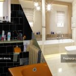 Zasadą, która zawsze się sprawdza podczas urządzania pomieszczeń w skali mikro są jasne kolory i powierzchnie odbijające światło. Architektka postanowiła wykorzystać beżowe płytki z błyszczącym wykończeniem, a także dekoracyjną, szklano-kamienną mozaikę. Z ciepłymi barwami kontrastują niebieskie dodatki, jednakże główną rolę odgrywają lustra. – Zastosowanie dużych luster to jedno z najprostszych, ale też najbardziej efektownych zabiegów, mających na celu optycznie powiększyć przestrzeń. Tafle umieszczone naprzeciwko siebie dodają przestrzeni głębi – mówi projektantka. W projekcie niebagatelną rolę odgrywa oświetlenie, wyznaczające dwie najważniejsze strefy – umywalki i wanny. Projekt zakłada także wykorzystanie listew LED nad oknem i pod wanną, które uzupełniają wiszące lampy.