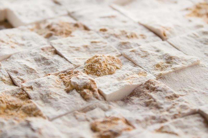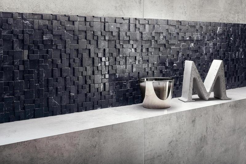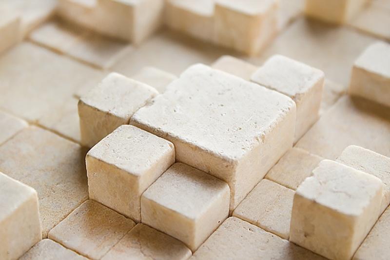 Połączenia naturalnego rysunku kamienia skomponowanego w kreatywną układankę z prostokątów i kwadratów różnych rozmiarów tworzących powierzchnię piaskowo-beżowej mozaiki Canyon. Dekor wydaje się bardzo surowy poprzez zachowanie naturalnych wżerów i nierównych krawędzi kamiennych płytek, a jego wypukłe elementy sprawiają wrażenie przestronności. Strukturalne kostki w różnych rozmiarach projektanci marki Ceramstic zamknęli także w kolejnej, równie intrygującej, kamiennej mozaice – Cubic. Geometryczna kompozycja dekoru skłania do zabawy formą i aranżacją.