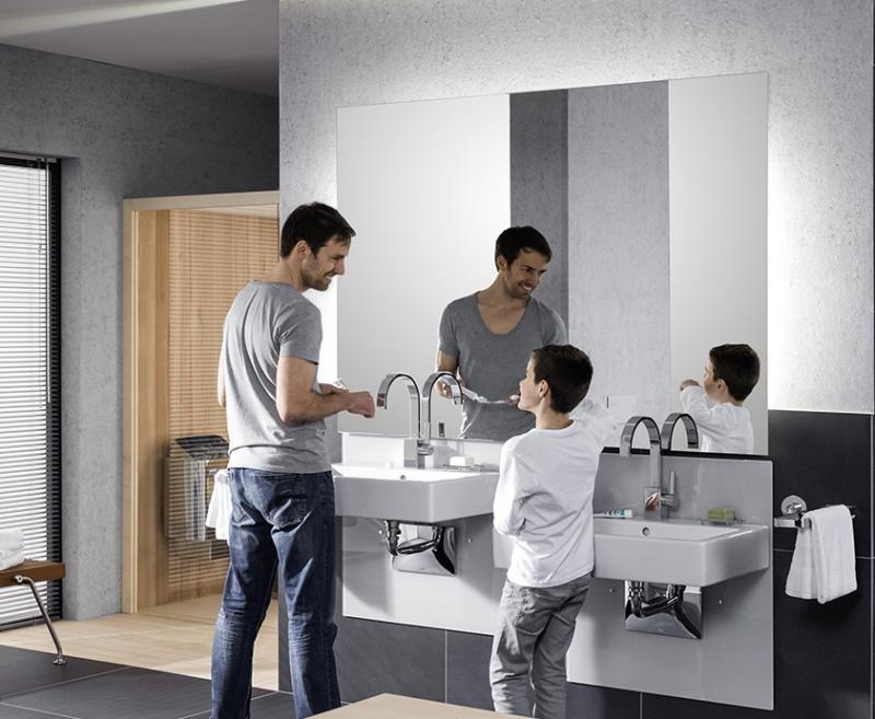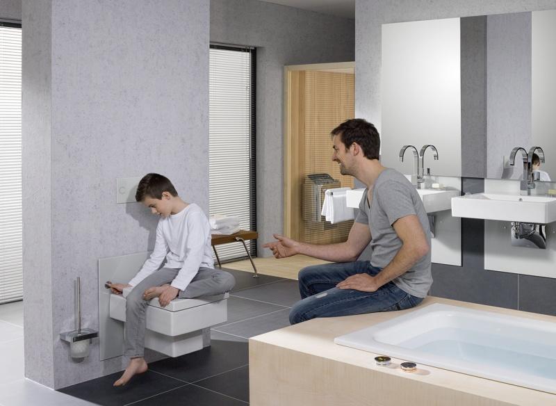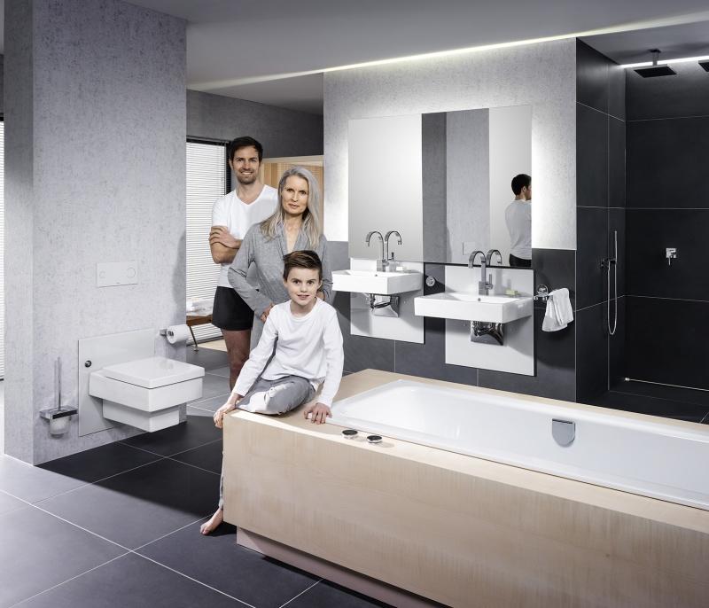 W domach wielopokoleniowych trudno jest zaspokoić potrzeby wszystkich użytkowników, zwłaszcza w przypadku łazienki. Młodsi i starsi, wysocy i niscy – każdy ma swoje preferencje i przyzwyczajenia. Każdemu byłoby wygodniej, gdyby umywalka i miska WC były zawieszone na optymalnej dla niego wysokości. Dlatego warto zwrócić uwagę na produkty z opcją indywidualnej regulacji przyciskiem i sterowane elektronicznie armatury.