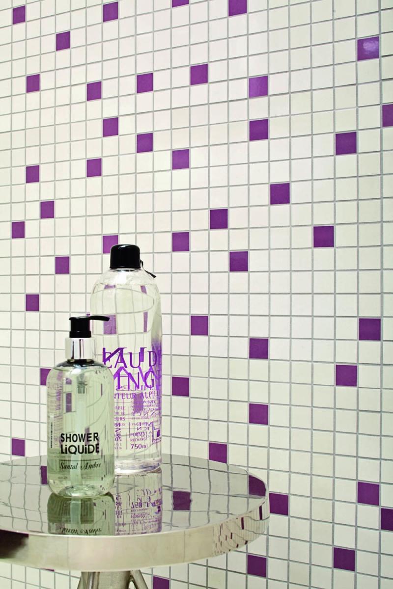 Subtelność i delikatność to słowa, które w idealny sposób odzwierciedlają charakter kolekcji Luciola w drugiej wersji kolorystycznej. Połączenie bazowej płytki ecru z fioletową dekoracją ścienną, pozwala stworzyć nam wnętrze ciepłe i przytulne, które łączy w sobie praktyczność ze światem aktualnych trendów wzorniczych. Na uwagę zasługuje malarskie, akwarelowe inserto „Fiori” z przenikającymi się motywami liści i kwiatów. Jest ono uszlachetnione dekoracyjnymi elementami granilli, której wypukłości czuć pod palcami.