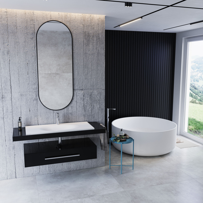 Na szczególną uwagę zasługuje okrągła wanna Ovalo, która sprawdzi się jako centralny punkt salonu kąpielowego. Jej elegancka forma oraz gładka powierzchnia są wyjątkowymi atutami tego modelu, składającymi się na prawdziwie designerski element wystroju.