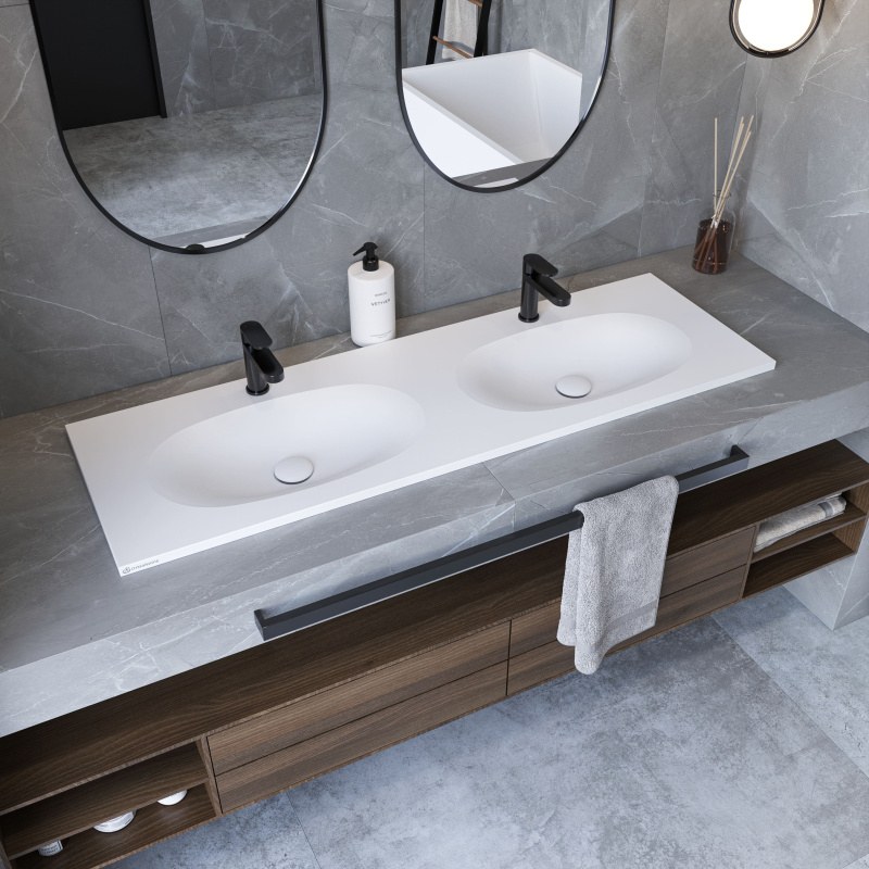 W ofercie Cristalstone® pojawiła się zupełnie nowa kolekcja – Armonico. Tę wyjątkową linię umywalek wyróżnia niski blat oraz zastosowanie klasycznego odpływu tradycyjnego. Modele są dostępne w kilku wersjach rozmiarowych: 100, 110, 120, 130 oraz 140 cm szerokości. Pierwsze cztery produkty posiadają odpływ umieszczony centralnie, natomiast piąta – największa propozycja w ofercie charakteryzuje się funkcjonalną podwójną misą, dzięki której z wyposażenia mogą wygodnie korzystać dwie osoby jednocześnie.