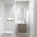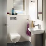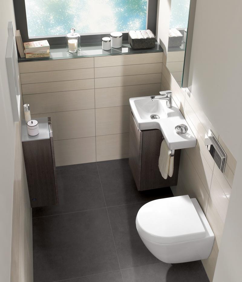 Jeśli łazienka jest podłużna i wąska, a okno znajduje się na samym jej końcu, wówczas powinno się rozplanować ją w jednej linii – WC oraz umywalkę najlepiej umieścić obok siebie, zawiesić albo ustawić niewielką szafkę i… zagospodarować parapet! Miejsce dla przyborów łazienkowych zapewni również mała umywalka z ceramiczną półką z kolekcji Subway 2.0. Znajdujący się pod nią praktyczny uchwyt na ręcznik sprawi, że dodatkowe wieszaki nie będą już potrzebne!