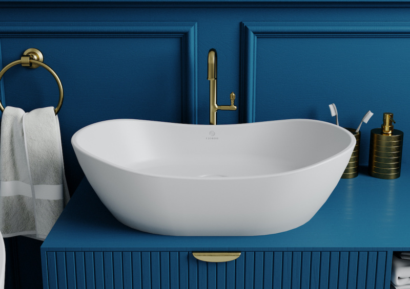 I jeszcze AQUASTONE®, z którego wykonano modele BOLSTAD. Woda w nim wolniej stygnie, więc nie musimy jej ciągle dolewać. Ten kamienny kompozyt jest też aksamitny i ciepły w dotyku, zaś składnik hydrofobowy powoduje, że łatwiej czyści się powierzchnię. Dopełniająca linię umywalka nablatowa też jest przemyślana. Krawędź misy jest lekko wklęsła, a boki nieco uniesione. Dzięki temu woda mniej się rozpryskuje podczas codziennego mycia rąk czy pielęgnacji twarzy. I tak jak we wszystkich urządzeniach marki FJORDD, tu maskownice odpływu również są z AQUASTONE®. To daje pełną swobodę stylu i koloru baterii. Z uniwersalnym designem BOLSTAD możemy pokusić się o formę ultranowoczesną albo bardziej kunsztowną, w duchu retro. Obie będą strzałem w dziesiątkę!