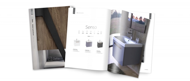 Katalog mebli łazienkowych marki Defra dostępny jest zarówno w wersji papierowej, jak i elektronicznej (na www.defra.pl/do-pobrania/)