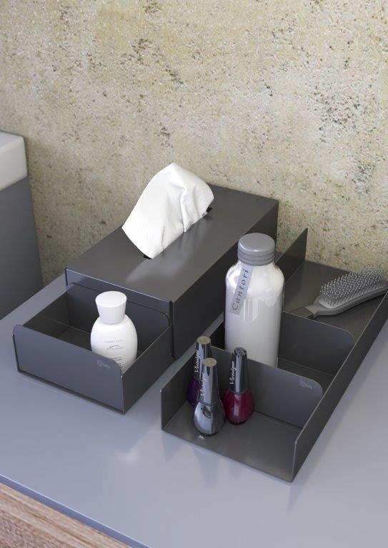 Dodatkowymi elementami, które zwiększą komfort użytkowania mebli z kolekcji NODO, a także doskonale dopełnią przestrzeń łazienki, są eleganckie i praktyczne metalowe akcesoria łazienkowe. Oferowane przez markę Defra eleganckie wkłady do szuflad DefraBOX pozwalają na indywidualizację wnętrza szuflady, a uchwyty na papier toaletowy i ręcznik, z pewnością podkreślą styl mebli i charakter wnętrza.