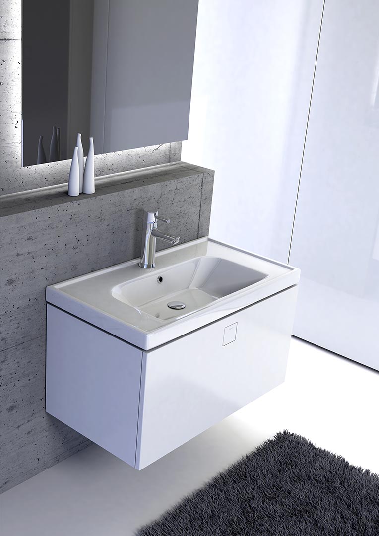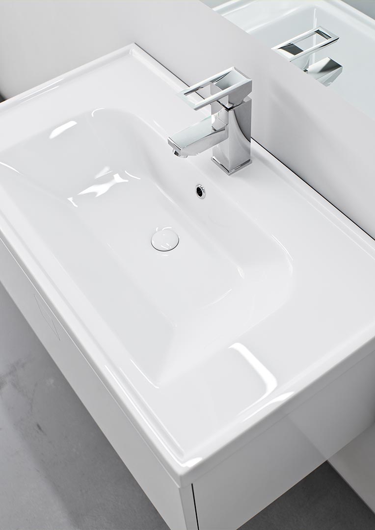 Doskonałym uzupełnieniem szafek z kolekcji SENSO są cztery dedykowane ceramiczne umywalki, dopasowane do wielkości szafek, które czynią ofertę kompleksową i funkcjonalną.