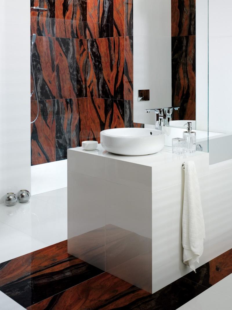 Kolekcja Inferno to odważna propozycja marki Ceramstic, dla znudzonych monotonnymi wnętrzami bez wyrazu. Inspiracją dla koralowo – czarnego wzoru gresu był kamień Butterfly Red. Deseń, który przypomina ognistą lawę, rozpali każde pomieszczenie. Odpowiednie zestawienie gresu z kontrastującą bielą bądź czernią, pozwala stworzyć eleganckie, a zarazem oryginalne wnętrze z charakterem. Duże możliwości aranżacyjne kolekcji umożliwiają zaspokojenie potrzeb najbardziej wymagających miłośników odważnego designu. Nietypowy, duży rozmiar płytek warto wykorzystać układając je na większej powierzchni np. całej ścianie. W ten sposób uzyskamy wyrazisty akcent dekoracyjny. Drobne wżery, pęknięcia, użylenia, które znajdują się na powierzchni płytek zwiększają efekt naturalności.