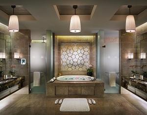W wystroju wnętrza łazienek w apartamentach VIP dominują wymieszane akcenty europejskie i azjatyckie. Centralnym elementem tych pomieszczeń jest usytuowana w obudowie wykonanej z kamiennych płyt wanna Mega Duo Oval z systemem hydromasażu firmy Kaldewei. Jej ergonomiczny, miękki kształt doskonale wtapia się w stylowe wnętrze łazienki.