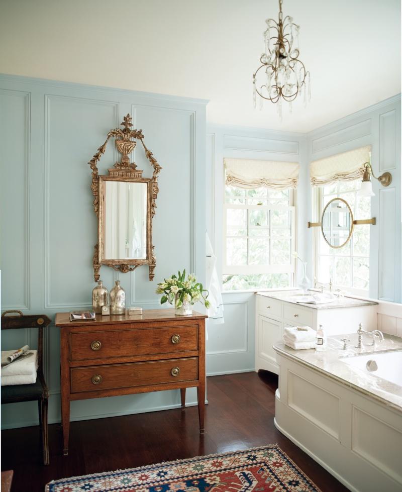 W łazience często zmienia się temperatura i panuje wysoka wilgotność powietrza. Ale to nie oznacza, że farba w takich warunkach się nie sprawdzi. Benjamin Moore swoją łazienkową Aurę Bath&Spa 532 przygotował na działanie wilgoci i mikroorganizmów. Jest też bardzo odporna na szorowanie i zmywanie wodą. Można nią malować nie tylko ściany, ale też elementy drewniane: drzwi, listwy, czy framugi okien.