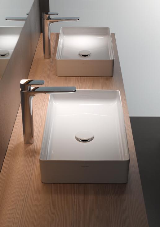 Umywalki nablatowe z serii Kartell by Laufen to przykłady wykorzystujące materiał Saphirkeramik™. Wyrazista geometria ceramicznych brył jest dowodem na poszukiwanie innowacyjnych, lekkich rozwiązań wpisujących się w nowoczesne wnętrza miłośników designu i ekologii.