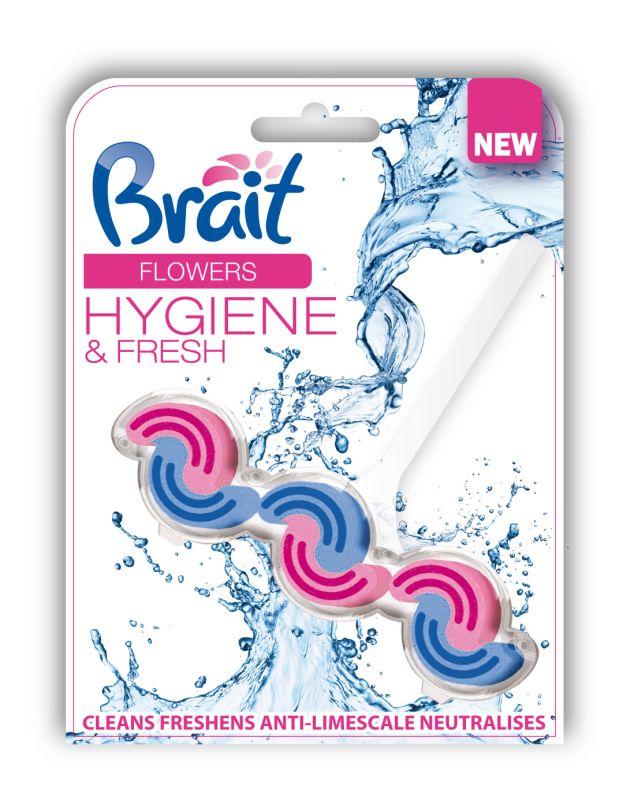Kostka toaletowa Brait Hygiene&Fresh dostępna jest w trzech wariantach – Flowers, Pine i Oceanic. Koszt to ok. 3,49 zł.