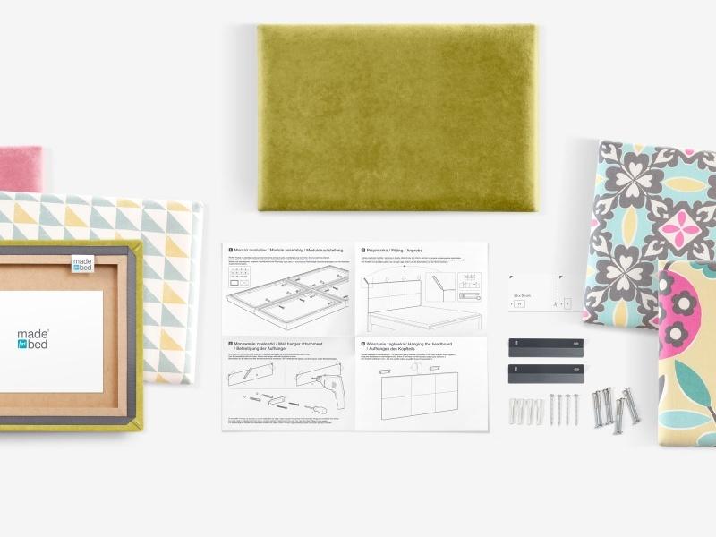 Made for bed to polska marka powołana do życia w 2012 roku przez małą, rodzinną firmę. Wraz z powstaniem marki na polskim rynku pojawił się zupełnie nowy produkt: zagłówki modułowe. Od razu zaczęły się one cieszyć zainteresowaniem projektantów oraz miłośników dobrego designu. Ich fenomen polega na tym, że można je dowolnie konfigurować – mamy do wyboru kilka wymiarów modułów (można także za dopłatą zamówić rozmiar niestandardowy), sami określamy ich ilość i układ oraz – co daje najwięcej frajdy – dobieramy tkaniny i kolory. A wybór jest naprawdę ogromny! Jeśli jednak nie znajdziemy wśród nich tego, o czym marzymy, to właścicielki firmy – Kamila i Maja chętnie przyjdą nam z pomocą – pokażą tkaniny „spod lady”, poradzą odnośnie doboru kolorów. Żeby łatwiej było stworzyć projekt, który nada naszej sypialni osobistego uroku, na stronie www.madeforbed.com udostępniony został wygodny kreator. Wystarczy kliknąć „zamów”, a dalej już zostaniemy poprowadzeni za rękę. Okres oczekiwania na zagłówek wynosi najczęściej od 2 do 4 tygodni. Jest on wysyłany w postaci zestawu do samodzielnego montażu, w którym zawarta jest instrukcja i akcesoria niezbędne do zawieszenia go na ścianie.