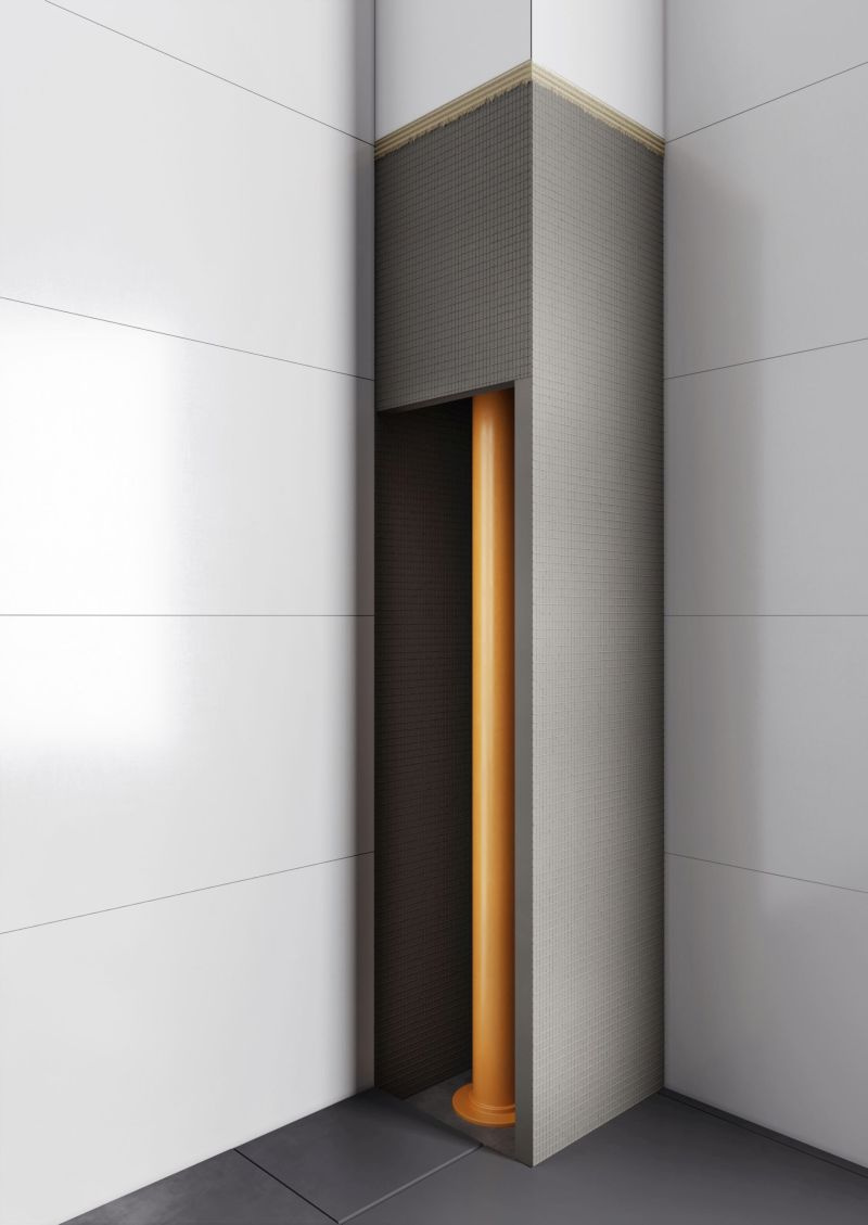 Fot. Ultrament / zabudowa rury profilem narożnikowym z płyty budowlanej