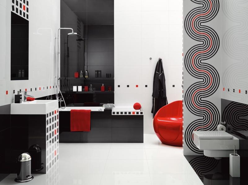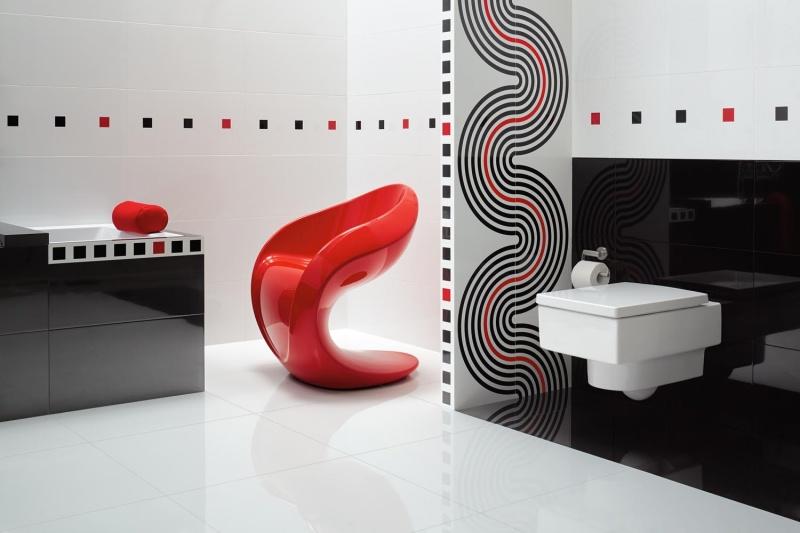 Jeśli planujemy we wnętrzach zastosować dekor warto komponować płyty nie tylko ze względu na wzór, ale także rozmiar i rodzaj. Wybór jest szeroki i warto z niego korzystać. Szczególnie, że sama aranżacja nie powinna przysporzyć dużych problemów wykończeniowych. Metody układania dekorów są takie same jak w przypadku zwykłych płytek. Często wykorzystuje się te same kleje montażowe – mówi Romuald Skrzypczyński. Układając płytki na ścianie, można zastosować klej o niższych parametrach, niż w przypadku podłogi. Na ścianach płytki nie podlegają takim obciążeniom jak na posadzce, gdzie płytki podłogowe powinny mieć powierzchnię styku z klejem min. 90-95%. Kiedy wybieramy płytki w różnych rozmiarach, warto uzupełnić aranżację równie nietypowymi dekorami. Kolekcja Opp! Ceramstic to nie tylko możliwość łączenia bieli i czerni w niebanalny sposób, ale także dekory szklane, mozaiki, listwy czy zdobione gresy szkliwione, które nie tylko w łatwy sposób można dopasować do płytek w różnych wymiarach, ale także wprowadzić ciekawą strukturę lub akcent kolorystyczny, ożywiający wnętrze. Opp! Lines czy Morocco warto połączyć z gresem szkliwionym Opp! White i Black. Wszystkie dostępne są w wymiarach 60×60 cm, dzięki czemu uzyskamy ozdobną, ale jednolitą przestrzeń. Miłośnicy energicznych kształtów i intensywnych barw mogą wykorzystać płytki Opp! Aim lub Opp! Point w rozmiarze 60×30 cm. Czerwone akcenty przykują uwagę, a wzory pozwolą na zabawę optyczną i urozmaicenie powierzchni. Ciekawym pomysłem może okazać się także dekor Opp! Dot, dostępny zarówno w wymiarze 60×30 cm jak i w formie listyw 60×6 cm. Wzór na płytce przypomina osadzone kropelki wody i dzięki wrażeniu przestrzenności, mocno eksponuje wnętrze. Warto go, więc umieścić przy umywalce lub dookoła lustra. Listwy dekoracyjne Opp! Point (60×7 cm) lub Opp! Dot (60×6 cm) uzupełnią aranżację, dobrze sprawdzą się w wykończeniu obudowy wanny czy blatu pod umywalki.