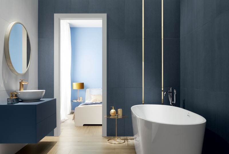 To kolekcja, która bardzo dużo oferuje – od geometrii występującej na mozaikach i dekorach ściennych, przez płytki o strukturze przypominającej sploty tkanin – len i bawełnę, aż po monochromatyzm – elementy w pięciu kolorach – bieli, beżu, szarości, przydymionego niebieskiego oraz granatu. House of Tones to przepis na ultranowoczesne wnętrze.