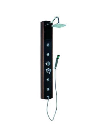 Elegancki panel natryskowy z hydromasażem. Połączenie szkła i drewna doda niepowtarzalnego stylu każdej łazience. 4 ruchome dysze do hydromasażu pozwolą w pełni zrelaksować się po ciężkim dniu.