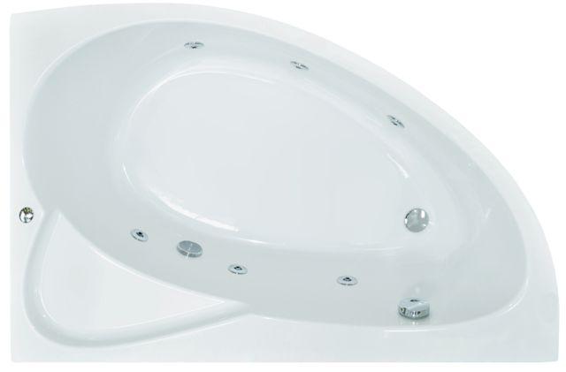 Wanna narożna, o wymiarach 150 x 100 cm. Wyposażona w hydromasaż. Dodatkowo istnieje możliwość zakupienia obudowy.
