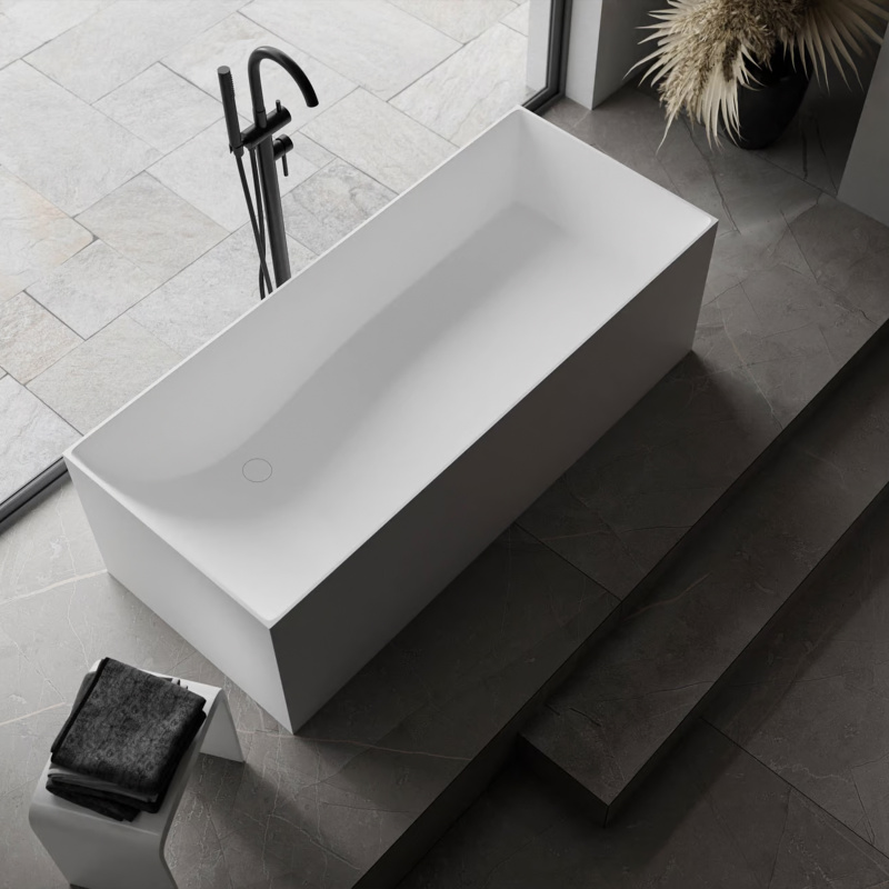 Prostokątna wanna wolnostojąca LUNA STONE to kusząca propozycja dla fanów minimalizmu. Jej prosta linia i kształt nadają wnętrzu świeżości i odrobiny nowoczesności. Dzięki minimalistycznej formie i swojej uniwersalności idealnie wpasuje się w każdą aranżację.