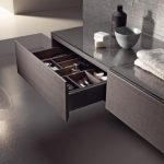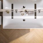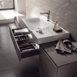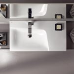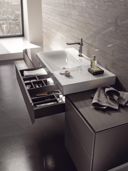Z pozoru proste i oczywiste, formy ceramiki kolekcji XENO2 potrafią zaskoczyć. Charakterystyczny dla tej serii – architektonicznie czysty kształt umywalek połączony z gładką, sprawiającą wrażenie rzeźbionej przez wodę misą, tchnie spokojem i harmonią. Precyzja geometrycznych linii, współdziałając z naturalną delikatnością, tworzą kształty, które urzekają szlachetną prostotą. Wrażenie to spotęgowane jest poprzez perfekcyjne dopasowanie mebli, których prosta linia koresponduje ze stylem elementów ceramicznych. Podwieszane moduły unoszą się nad posadzką dodając aranżacji lekkości.