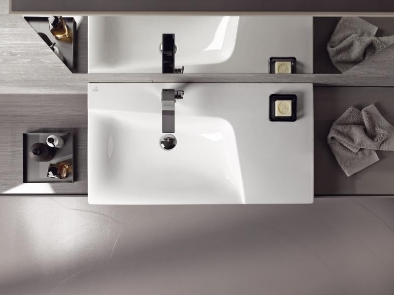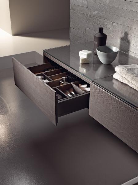 Dzięki specjalnej macie grzewczej na lustrze nie osiada para wodna. Boczne lampy LED ułatwią wykonanie perfekcyjnego makijażu lub precyzyjne ogolenie zarostu. Przestrzeń przestronnych mebli została podzielona tak, by znalezienie kosmetyków nie sprawiało trudności. Podświetlane szuflady można funkcjonalnie zagospodarować, wykorzystując specjalne wkłady. Dzięki macie antypoślizgowej kosmetyki nie przemieszczają się przy wysuwaniu szuflad.