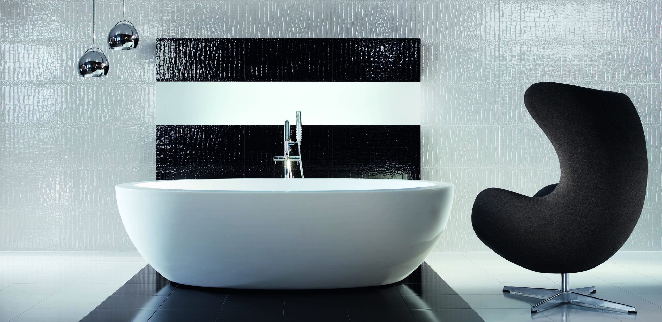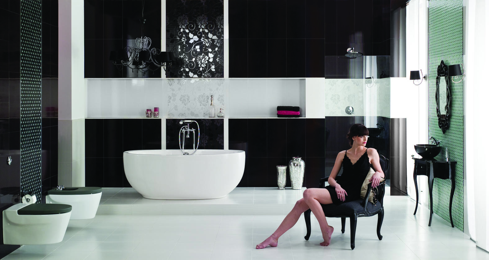 Nowością na rynku okazała się czarna ceramika sanitarna. Spotykane dotychczas białe wanny, brodziki, sedesy i umywalki oraz połyskujące srebrne baterie zmieniły swój wygląd na odważniejszy. Coraz częściej porcelanowa czarna wanna, czy też czarna umywalka stają się głównym elementem dekoracyjnym łazienek. Wykorzystanie ciemnej armatury sprawia, że wnętrze staje się nowoczesne i niebanalne. Ta niestandardowa propozycja idealnie komponuje się na tle białego, geometrycznego wzoru lub z glazurową szachownicą. Natomiast zwolennicy jaśniejszych wnętrz mogą użyć jej jako głównego kontrapunktu w zderzeniu bieli z czernią.