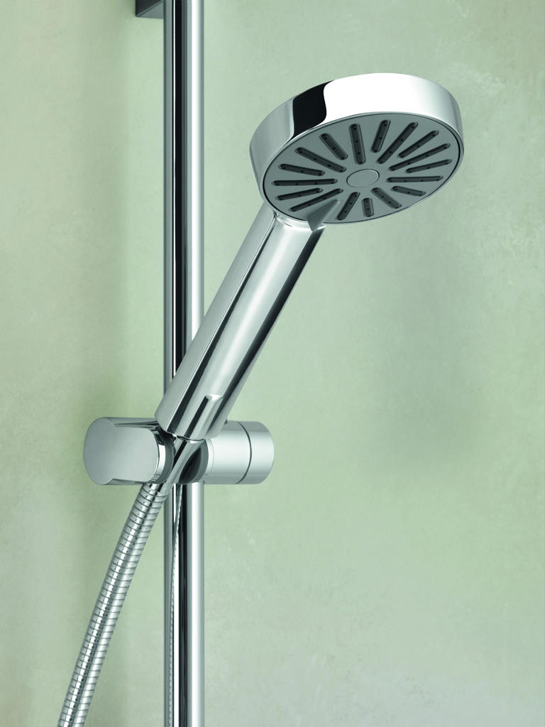 Kolejną grupę tworzą rozwiązania należące do programu natryskowego KLUDI. Natryski są wyposażone w specjalne głowice, ograniczniki oraz funkcje Eco pomagają zmniejszyć zużycie wody prawie o 50%. Strumień wody wypływający z głowicy natryskowej KLUDI A-QA ECO jest szeroki i delikatny. Mimo ograniczenia wypływu wody do 9 l/min. głowica ta pozwala zachować przyjemność kąpieli podczas korzystania z natrysku. Wąż natryskowy Eco ma zamontowany ceramiczny ogranicznik wypływu wody, a jego regulacja jest płynna w zakresie od 20 do 2 l/min. Ponadto, rączka natrysku KLUDI A-QAb wyposażona jest uruchamianą przełącznikiem funkcją Eco, dzięki której zużywa się nawet o 50% mniej wody.