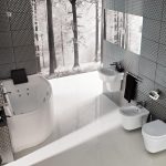 Ceramika i armatura powinna być spójna z całością pod kątem form albo przeciwnie – kontrastująca w uzasadniony sposób. Jeżeli decydujemy się na formy kanciaste wanny, toalety i umywalek to bezpieczniej jest zastosować baterie również kanciaste. Przy rozplanowaniu sanitariatów warto sprawdzić w rysunkach technicznych szczegółowe wymiary i sposób montażu, aby uniknąć zaskoczenia w wyniku różnic wysokościowych montowanych urządzeń.