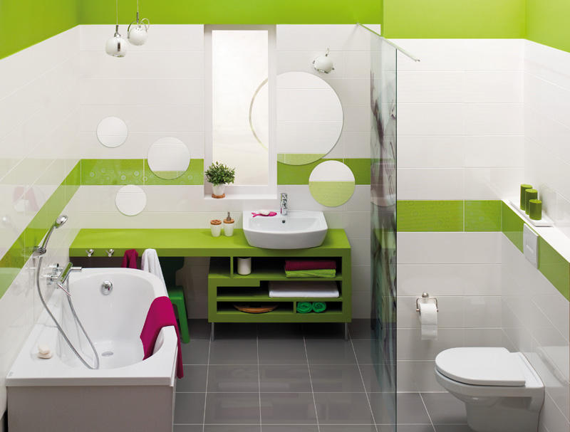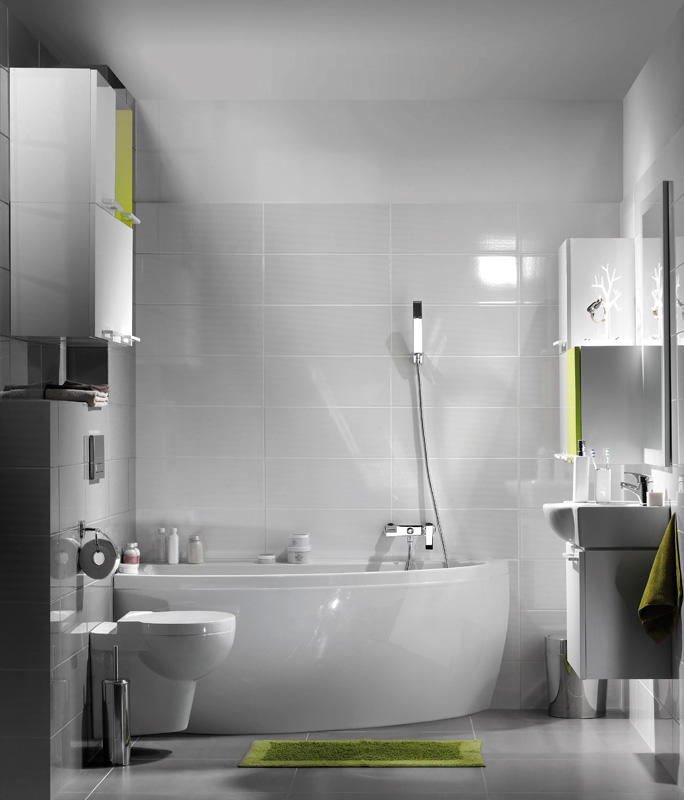 Duże lustro optycznie powiększa przestrzeń. Chcąc spotęgować ten efekt i dodać mu głębi warto umieścić po przeciwnej stronie, obraz, fotografię na mozaice, tafli szkła lub poliwęglanu czy fototapetę – tu najlepiej sprawdza się lateks laminowany, bo ma gładką powierzchnię i można go myć. Pomimo wodoodporności tapety nie powinna być ona w zasięgu bieżącej wody ze względu na klej. Na optyczne powiększenie przestrzeni wpływa także układ płytek i dekorów. Podłużnymi pionowymi elementami można podwyższyć łazienkę, poziomymi poszerzyć, natomiast kwadratowymi płytkami podkreślić jej kształt. Proporcjami pomieszczenia można manewrować także przy wykorzystaniu wstawek z elementów drewnianych. W tym kontekście ciekawym rozwiązaniem może okazać się również obudowanie drewnianą osłoną wanny i położenie desek np. teakowych lub bambusowych na podłodze. Zastosowanie materiałów połyskujących, polerowanych nie tylko rozświetli, ale także ułatwi utrzymanie łazienki w czystości, bo na matowych płytkach bardziej osadza się kamień.