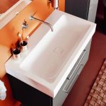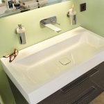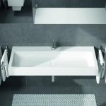W tej samej tonacji wykonano umywalkę CENTRO i dopasowano ją do wanien Centro Duo i powierzchni prysznicowej Superplan Plus, gdzie cechą charakterystyczną jest okrągła emaliowana pokrywa odpływu. Zarys zewnętrzny umywalki to prostokąt, w którym niecka tworzy wyraźnie ukształtowany owal. Design umywalki jest idealny nie tylko do nowoczesnego wystroju łazienki, ale także doskonale komponuje się z tradycyjną architekturą wnętrza. Umywalka posiada obszerną półkę, którą możemy wykorzystać na przybory łazienkowe. Umywalki CENTRO występują jako nablatowe z rantem 4 lub 12 cm, podblatowe i ścienne. Wszystkie dostępne są w wielu rozmiarach (np. 60 x 50cm, 90 x 50cm, 120 x 50cm), także z otworami pod baterię.