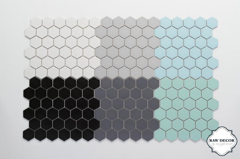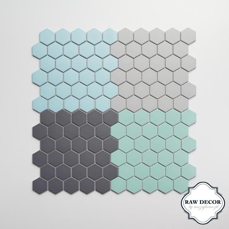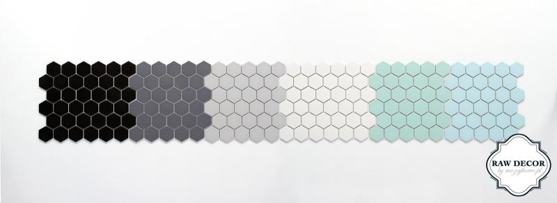 Najnowsza kolekcja marki Raw Decor by Mozaikowe.pl o nazwie „Mineral” to zestaw mozaiki heksagonalnej w 4 pięknych, pastelowych kolorach. Odcienie błękitu, mięty, jasnej i ciemnej i szarości wprowadzają do wnętrza spokój i harmonię. Doskonale wpisują się w trendy wnętrz o tak modnym w ostatnich latach charakterze skandynawskim. Dodatkową zaletą tej mozaiki jest jej matowa, wpadająca w satynę powierzchnia, która dodatkowo podkreśla pastelowe kolory i nadaje płytkom niewymuszonej elegancji. Najnowsze zestawienie kolorystyczne można też z powodzeniem łączyć z dostępnym do tej pory w ofercie klasycznym zestawem czerni i bieli. Mozaika w kształcie heksagonów wprowadza do wnętrza miejski szyk. Dodatkowo nadając wnętrzom indywidualny, autorski charakter ponieważ każdy może bez problemu ułożyć ją według własnego pomysłu w wymarzone wzory, napisy, czy obramowania.