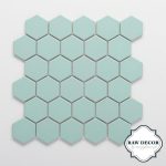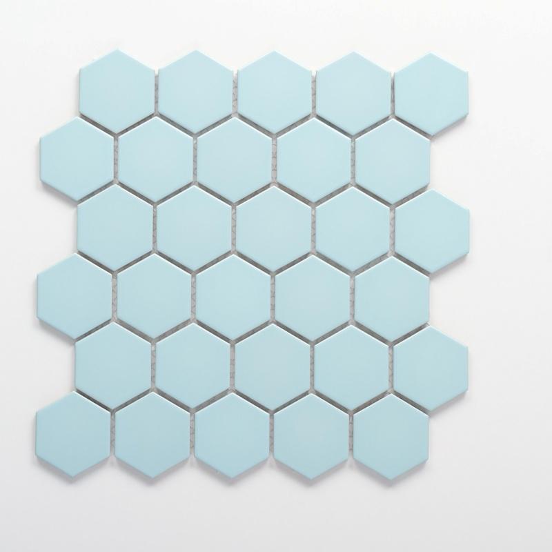 Nowoczesna, pastelowa kolekcja heksagonów w odcieniach błękitu, mięty i szarości daje też nieograniczone możliwości tworzenia z nich, wymarzonych zestawień kolorystycznych. Mozaiki heksagonalne wspaniale sprawdzą się też w połączeniach z innymi rodzajami płytek wielkoformatowych. Z łatwością można dodawać je jako wstawki do modnych w ostatnim czasie płytek w kształcie cegiełki. Pięknie będą prezentować się w połączeniu z płytkami drewnopodobnymi, lub wielkoformatowymi.