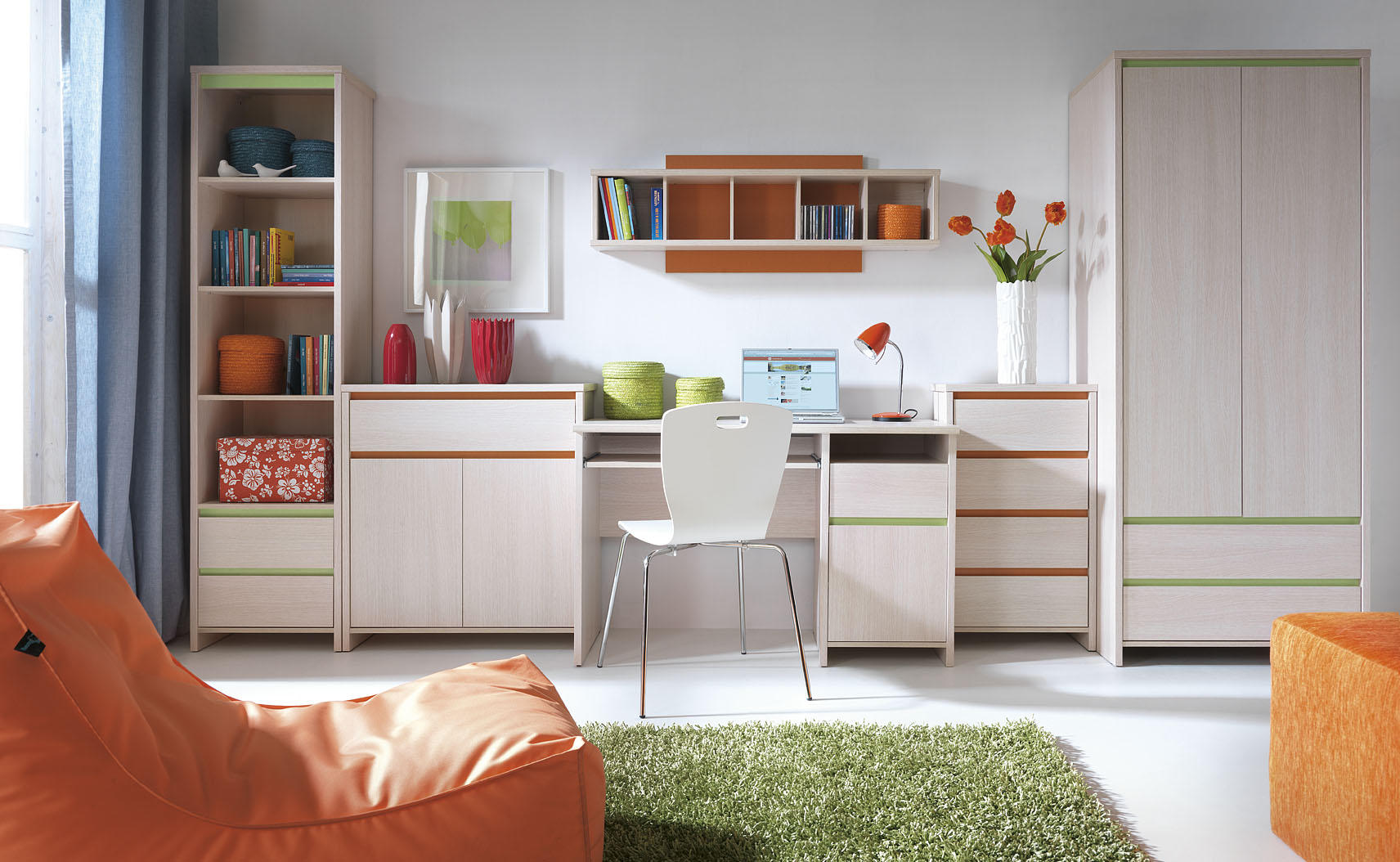 System modułowy Numlock to doskonały pomysł na aranżację niebanalnego i funkcjonalnego pokoju nastolatka. Z nowymi meblami z oferty Black Red White każdy drobiazg „znajdzie” odpowiednie dla siebie miejsce. Z kolei dwubarwna listwa ozdobna – w kolorze pomarańczowym i zielonym – pozwala na zmianę stylizacji wnętrza bez dodatkowych kosztów.