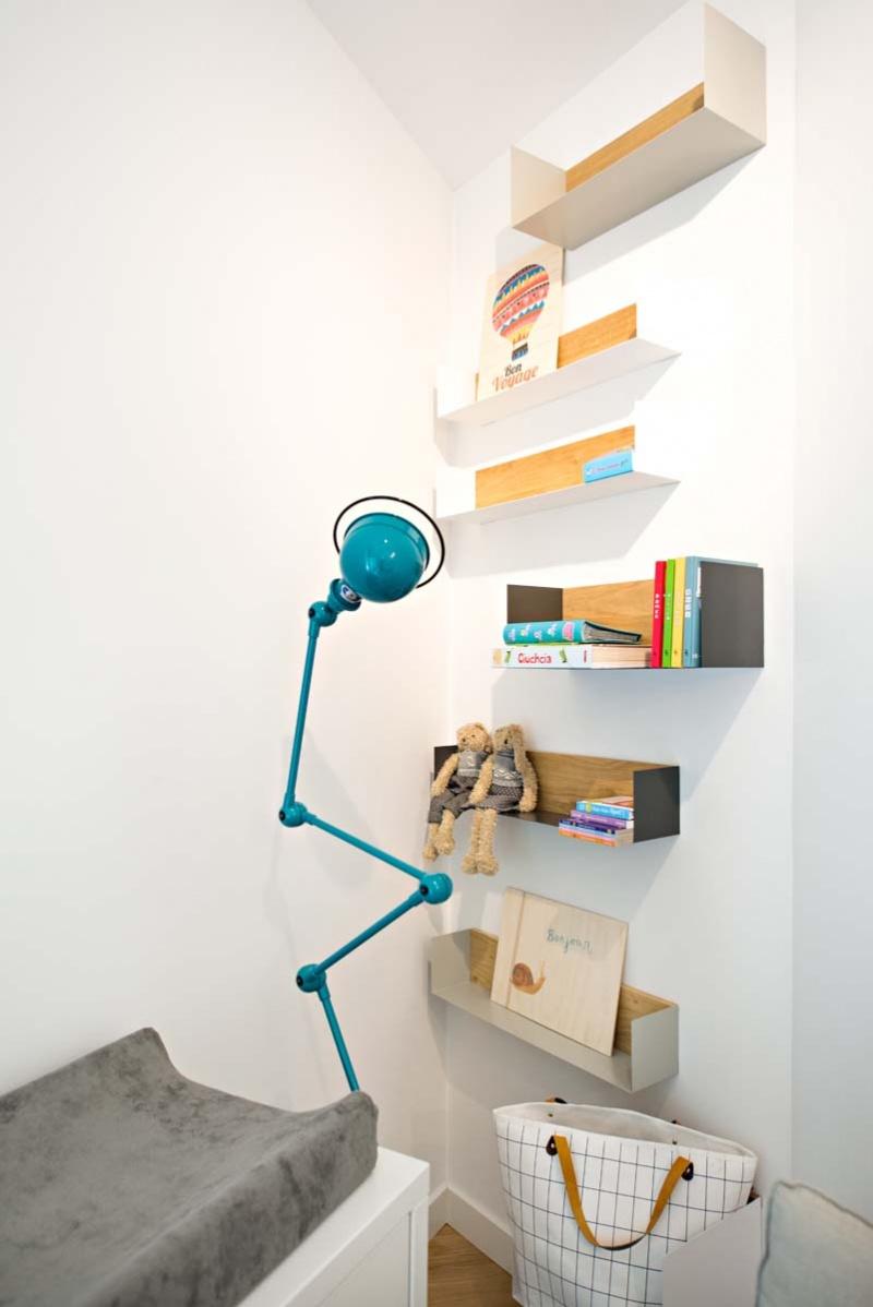 Jeśli chodzi o oświetlenie sztuczne, jest ono oczywiście ściśle powiązane z podziałem pokoju dziecięcego na strefy użytkowania, jednocześnie stosuje się elementy oświetlenia bezpośrednio związane z wykonywanymi w pokoju przez dziecko czynnościami lub z elementami aranżacji wnętrza.