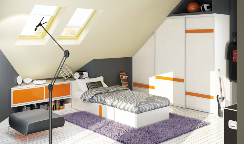 Łóżko w pokoju młodzieży to nie tylko miejsce snu, ale też lektur, relaksu, a nawet pracy. Wybór mebla na wymiar pozwala w ciekawy sposób połączyć np. strefę snu z zabudową przy ścianie. Przy takich rozwiązaniach samodzielnie decydujemy o każdym detalu mebla.