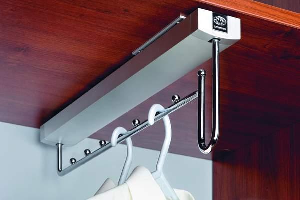 W korytarzu pozostawiamy odzież wierzchnią. Nawet w niewielkim przedpokoju warto więc wygospodarować nieco miejsca na zabudowę, która ukryje kurtki i płaszcze, a także obuwie. Szafa na odzież wierzchnią musi mieć głębokość co najmniej 60 cm plus grubość drzwi, po to aby drzwi nie ocierały się o zawieszone ubrania. Nie zawsze jednak ograniczony metraż pozwala nam na taki mebel. Jeśli taką przestrzenią nie dysponujemy, możemy zastosować, dostępne w ofercie firmy Komandor, wieszaki poprzeczne, dzięki którym zmniejszymy głębokość szafy.