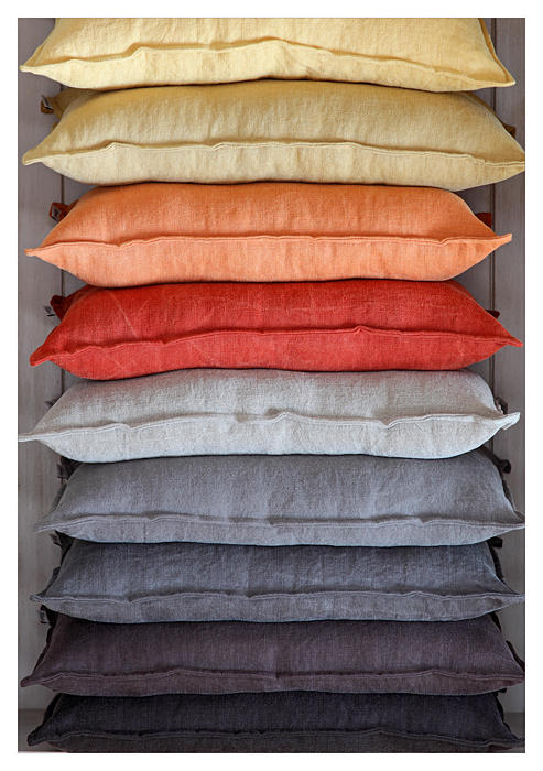 Poduchy Lniane, dostępne w różnych kolorach, wykonane z tkaniny obiciowej (gramatura ok. 380 g/m2). W stanie pierwotnym dobrze dobita, ale bardzo sztywna. W Lnianym Zaułku nadano jej wyjątkową miękkość, opierając w specjalnej maszynie z dodatkiem naszego świetnego środka zmiękczającego SofTLinen (dostępnego w sprzedaży w Lnianych Zaułkach)!