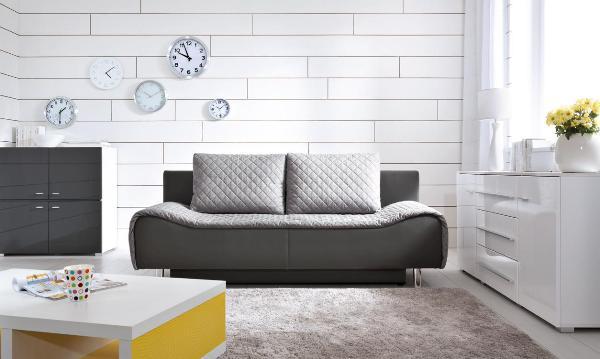 Wielbiciele komfortu docenią rozkładaną sofę Guliano. Zaokrąglony przód siedziska, a do tego duże poduchy oraz mniejsze – pełniące funkcję podłokietników – sprawiają, że model ten jest bardzo wygodny i praktyczny.