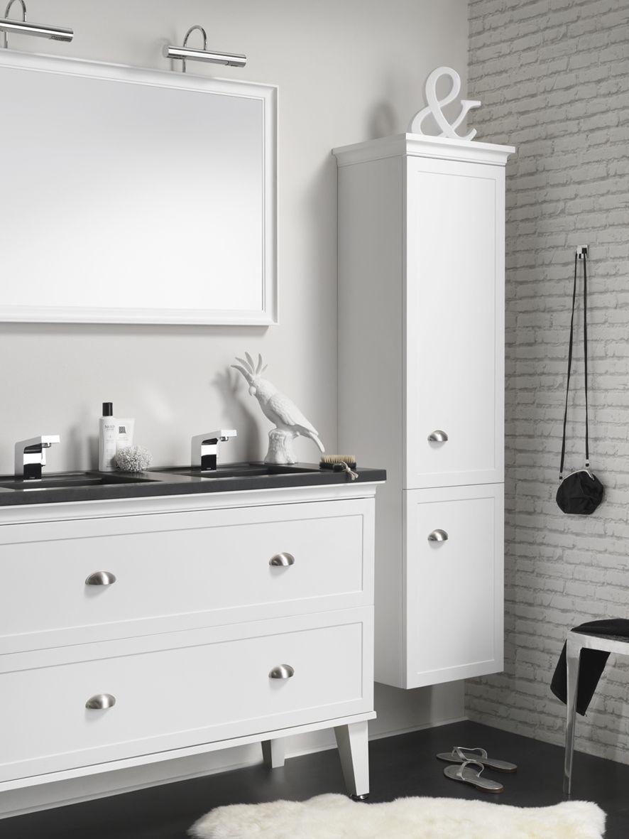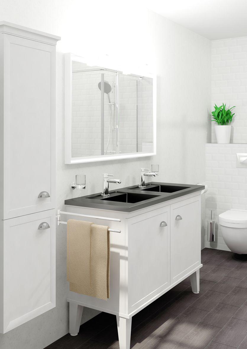 Canto to melodia delikatna, z romantyczną nutą. Białe proste szafki z zaznaczonymi płycinami, prezentują się stylowo, a przy tym bardzo współcześnie. Nawet uchwyt dedykowany do tych mebli zdaje się łączyć obie konwencje – formą jest mu bliżej klasyki, kolorem do moderny. Stylowe akcenty są na tyle delikatne, że nie narzucają swojego charakteru. Niezwykle urokliwym elementem kolekcji są stołeczki, które można w łazience wykorzystać jako podnóżek dla dzieci, ozdobną ławę lub miejsce na papier toaletowy.